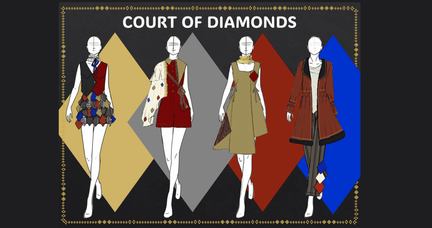 “Court of Diamonds” is a pre-fall 2026 collection that reinterpret the classic playing card diamond suit into a playful yet elegant capsule wardrobe. Inspired by the royal hierarchy of the playing cards diamond suits, which represents wealth and success, this collection explores the different characteristics of the hierarchy positions. Each silhouette of the collection manifests a different female individual in modern society.