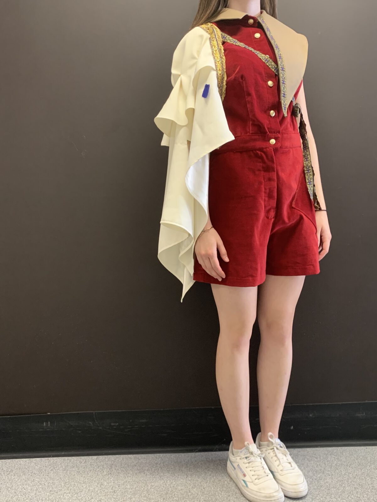 This silhouette represents the jack in the card deck. It illustrates the loyal and energetic spirits, inspired by young knights. This silhouette features a single shoulder cape and a jumpsuit with asymmetrical collar and diamond shape patch pocket. By implementing these design elements, this silhouette emphasises youthful and playful vibes.