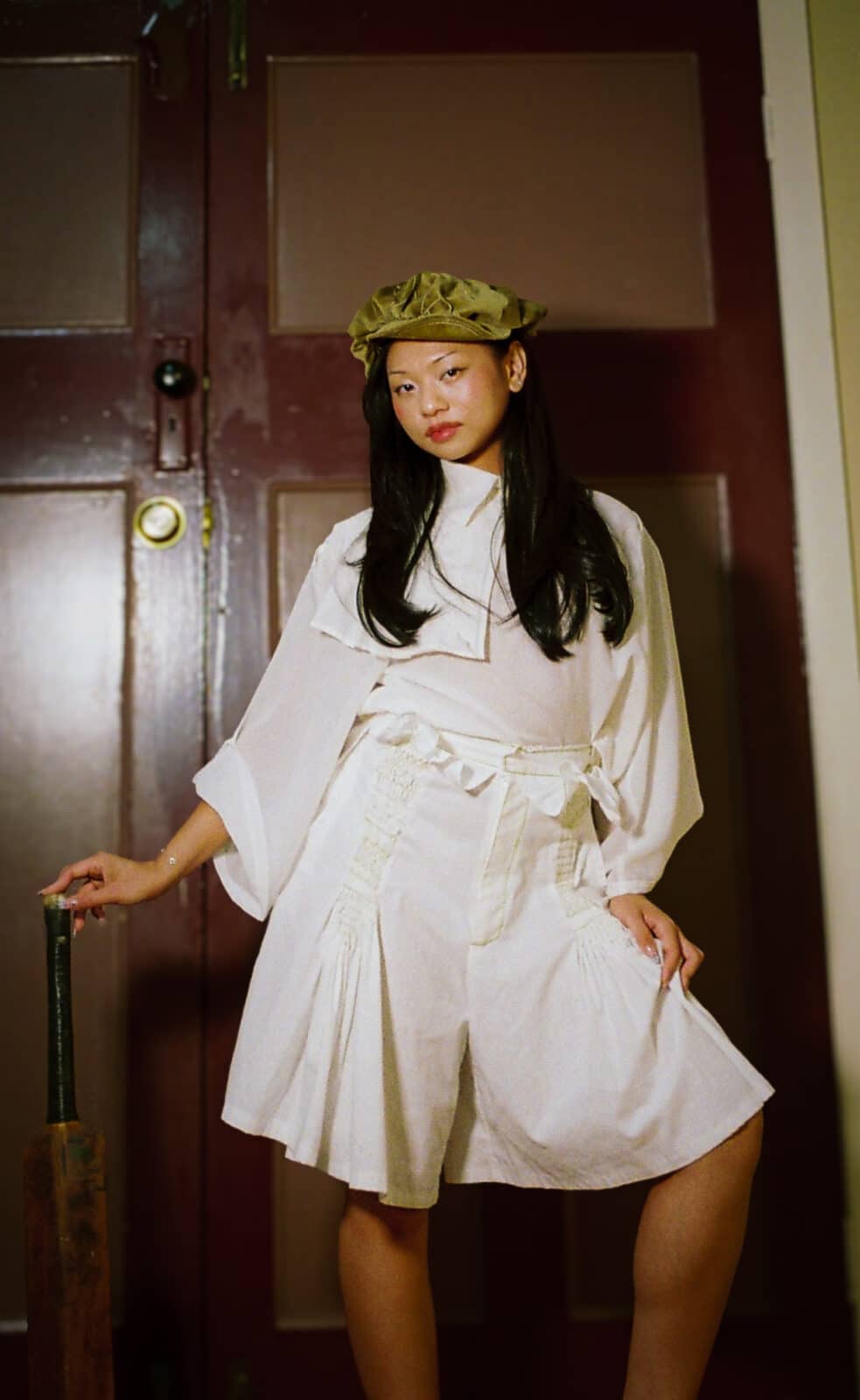 Women’s cricket evolved within strict dress codes that prioritised modesty over movement. Smocking is used here as a reinterpretation of protective padding